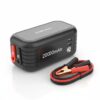 Multi-function jump starter with USB ports, LED flashlight and air compressor.