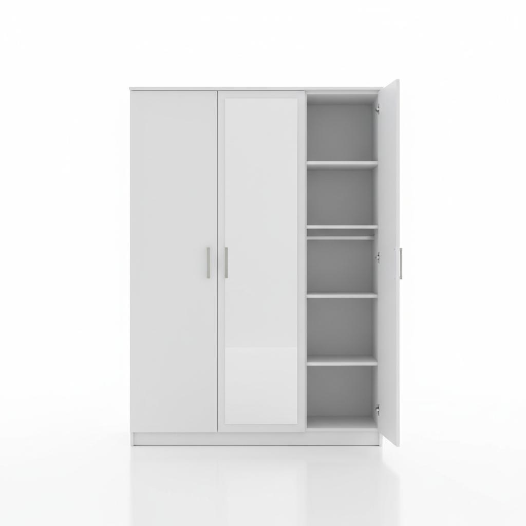 Spacious 3-door wardrobe with full-length mirror and multiple compartments.